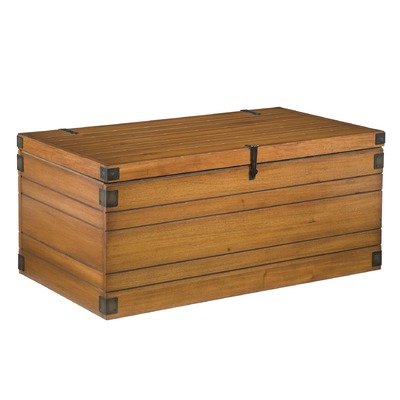 The Home Styles Large Planked Storage Blanket Chest has solid mahogany and mahogany veneer with engineered wood construction with a rich multi-step honey oak finish. It features distinctive black hardware, reinforced safety hinges on the lid and air holes for added safety. Stylish and functional, the Home Styles Large Planked Storage Blanket Chest is sure to fit comfortably in your home. Features: Blanket Chest has solid mahogany and mahogany veneer with engineered wood construction Honey Oak finish Black hardware Safety hinges on lid Air holes for added safety Cottage style Ready to assemble Specifications: Overall Dimensions: 18" H x 40" W x 22" D Weight: 62 lbs Shipping Carton Dimensions: 8" H x 25.5" W x 44.25" D Recommended Care: Clean with a soft, damp cloth Use a mild dishwasher soap mixed with water if necessary