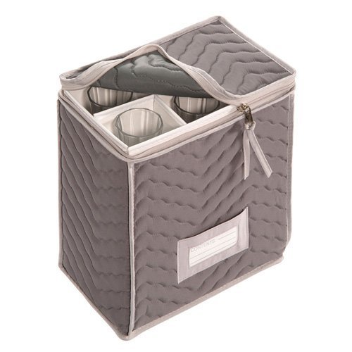 This quilted microfiber champagne flute storage container is perfect for storing your seldom used or seasonal champagne glasses. This microfiber flute storage chest features divided compartments for up to six flutes as well as a zippered top with reinforced side piping. A great way to store your glassware! This champagne flute chest is made of a strong lightweight material that is easy to clean and will provide years of durable storage. The perfect storage idea for your home!