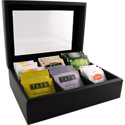 Wooden tea boxes make it easy to offer your guests a variety of flavors quickly and easily, with style and class. With a see-through window on top and a removable divider inside, it's the perfect place to store and display your tea. Wooden chest is lightweight and easy to open - ideal for restaurant use! In stock and ready to ship. Features: Made of wood. Plastic window displays your selection. Removable tea bag divider. Great for home or restaurant use. Tea bags not included. Specs: Dimensions: 9"W x 3 3/8"H x 6 15/16"D.